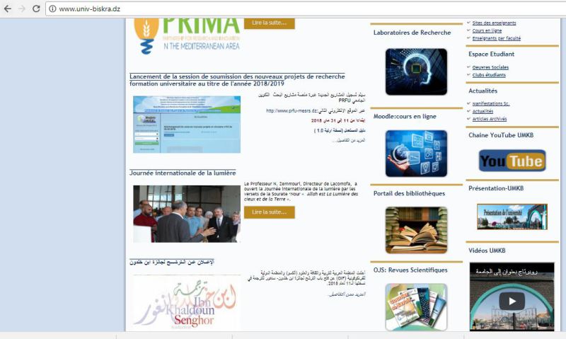 A partir du site web de université de biskra: http://www.univ-biskra.dz sur la page d'accueil