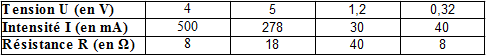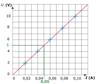 La différence de potentiel ou tension U (en volts) aux bornes d'une résistance R (en ohms) est proportionnelle à l'intensité du courant électrique I (en ampères) qui la traverse (figure I-3).